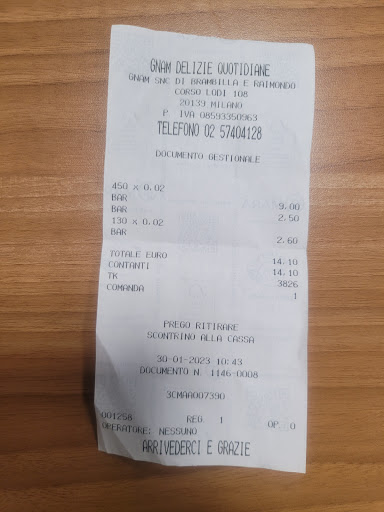 Read moreLocale caro ma, sinceramente, ho apprezzato molto il cibo anche se un caffè e un bicchiere d'acqua a 1,80 mi pare esoso per Corso Lodi. Non ci sono tanti posti a sedere nella loro "stanza" e se devi mangiare fuori, occorre avere un occhio attento ai predoni che frequentano la zona e passano troppo, troppo, vicini ai tavoli. Fate attenzione a smartphone borse e salute. Sicuramente non è colpa di chi gestisce il locale ma, non ho mangiato tranquillo con questa gentaglia che mi camminava attorno. Carinissimi e bravissimi...
