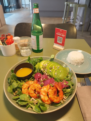 Lately, I have had too much pasta and pizza :) And today I was actually looing for a great place with brunch and pancakes. Fortunately, this place only serves that on the weekends. SO, I needed to choose something from the lunch menu and look what I have found. Very delicious and fresh salad with gambas and avocado. I have then ordered a portion of rice as a side dish. This is in particular recommended for ALL who want to eat healthy food. I feel much better after compared to eating a pancake :)