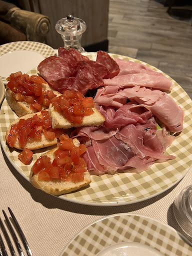 About half an hour later, our mains arrived, we were hungry so we would have just dug in and ate the starter (which btw was just cold cuts and bruschetta, so it's not like it needed to be cooked) but then the waitress noticed we didn't have the starter so told the food runner to just take back our mains... Without asking if we cared to eat it now. That was really bizarre, if they had asked we definitely would have just ate it, it wasn't a big deal! They just took it off the table! Then we had to wait another twenty minutes for the starter to come out, which was ridiculous! When it finally came out, we started eating, and then before we were completely done (we still had some cold cuts and cheese on the serving board) the food runner just comes by and removes our plates and utensils... Again, without asking if we were even finished! He left the board with the remainder of the food though.