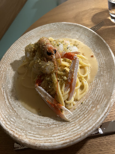 First, the value for money is simply phenomenal. Every dish was reasonably priced, especially considering the top-notch quality and portion sizes. The excellence of the ingredients really stood out; you could taste the freshness and care in every bite. A highlight for me was the fantastic raw langoustine fresh pasta. It was a super innovative dish, perfectly balanced with a delightful, slightly lemony flavor that left a lasting impression.