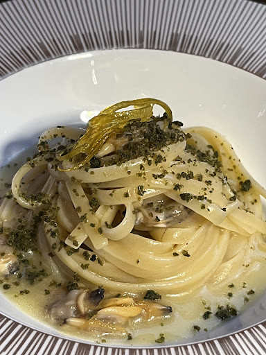 Food taste: flavors are great, well combined and (almost) always very delicate. My only note here is that the sauce of the clams pasta was too salty. Meat was tender and juicy with a very well made vegetable stuffing. Both pasta were perfectly cooked (Al dente) and the cheese cream was pure magic. Definitely worth it also the desserts where I personally found delightful the combination of different chocolates creams with chocolate crumbles. Last but not least the bread, one of the best I ever ate. It’s served warm and the crunchy crust combined with the soft inner part makes their bread stunning. presentation: served on nice dishes, plates were always well presented, elegant and with the right portion.