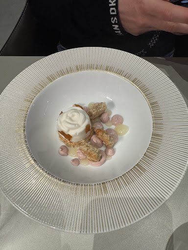 Read moreCome concludere l’anno nel peggiore dei modi. Mi sono lasciata attrarre dalle ottime recensioni e dall’alto rating, restando poi delusa una volta iniziata l’esperienza. Prima cosa da far notare è l’assenza di tovaglie sui tavoli e non solo, tavoli molto rovinati e di bassa qualità non all’altezza di un ristorante che si presenta come “fine dining”. Anche la scelta dei piatti utilizzati per il servizio fa discutere: uno degli entrée di benvenuto è arrivato su di un piccolo vassoio di plastica scadente. Lo schermo nella sala principale è terrificante e rovina decisamente l’atmosfera. Alla richiesta di essere spostati, poiché lo schermo mi accecava e disturbava, lo staff ci ha prontamente assistito, accontentandoci e spostandoci nella veranda, leggermente più accogliente, ma con appunto i tavoli di legno rovinati. Atmosfera quindi non delle più vivaci e accoglienti. Interni molto freddi e commerciali. Lo staff è accogliente, giovanile e gentile. Non ha l’atteggiamento e le abilità di uno staff da ristorante stellato, ma non essendolo non pretendevo di trovare un servizio tale. Il cibo è deludente quanto l’atmosfera. Molto basico, nonostante le tante parole spese sul menù. Dopo un’ora e mezza eravamo ancora all’antipasto. Dopo un’altra mezz’ora è arrivato il primo. Bottoni ripieni di granchio con bisque e olio al drangoncello, avevano lo stesso identico sapore dei gamberi bianchi, rossi e scampi con maionese ai crostacei, bisque e olio al basilico serviti come antipasto. Come secondo ricciola, un piatto assolutamente non da ristorante “fine dining”, scialbo e davvero poco speciale (allego fotografia). Molto probabilmente tutto il cibo era solamente riscaldato, non cucinato in loco. Dulcis in fundo, il panettone… che bontà. Uno degli impasti più buoni mai assaggiati. Sorpresa e pronta a cambiare alcune idee sulla bravura e abilità degli chefs, chiedo se fosse di loro produzione. Purtroppo ho ricevuto risposta negativa. Faccio comunque i complimenti a panificio Longoni per l’eccezionale impasto. Terminiamo l’avventura con un totale di 490€ in due. Che dire….a questo prezzo sicuramente l’esperienza peggiore della mia vita e fidatevi, non avrei speso tutto questo tempo per scrivere...