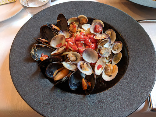 I ordered spaghetti with mussels and clams (15 euros). They gave a good amount of seafood. Seafood seemed decent fresh. However, I think the seafood and pasta were cooked separately. As I was eating the seafood first, some were luke warm/cold vs. the pasta. Definitely not the best meal that I have had in Italy. The portion to price ratio is not great. Also, there is a cover charge of 3 euros per person. My friend and I were fine with it. The thing that I am upset about is that when we asked for tap water, they came back with a bottle of water and opened it immediately. We had to pay 3 euros for that. I believe the waiters understood us. Of all the places that I have been in Italy, when I asked for tap water. They give tap water, and there's no charge. This is not how you...