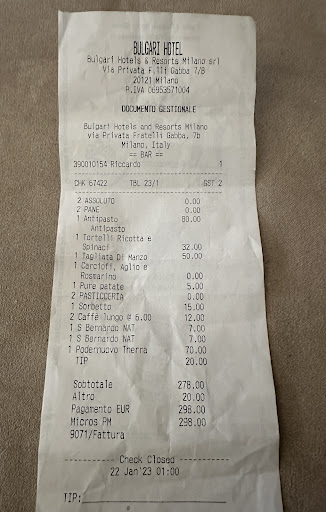 Read moreOn 21/01/2023 Saturday evening me and my friend visited Niko Romito restaurant at Bulgari Hotel Milano where unfortunately a bad customer service experience tainted the whole evening. Everything was fine until the bill came. The server couldn’t get our credit cards go through Apple Pay, and she didn't seem to know why. She had a bad attitude and said that she was happily going to take care of the situation. We had absolutely no problem with our bank accounts since all our payments during the trip in Milan were done by using Apple Pay. Unfortunately for us, we had left our wallets at the hotel because we intended to continue our night and didn't want to carry them around. Afterwards we were asked to go to the reception of the hotel where the problem persisted. After that the manager who had been observing, stepped in. The restaurant was empty and we were literally the only ones left waiting for a solution to be found. She didn't apologise and didn't accept a bank transfer on the spot, which I suggested as a quick solution. Instead she told me that one of the two should stay at the restaurant and the other should take a taxi to the hotel and return with cash. What kind of manager would ask something like that? I immediately refused because something like that would mean I would have to pay for the taxi which would cost for a problem that was clearly theirs. I asked the hotel to make a transfer for me, so I would be happy to go and bring the cash. She didn't accept that either. They left us waiting for almost another hour at the table without giving us any solution to the problem. The situation had really become very uncomfortable and it had already ruined the whole night for us since it was getting very late. The manager appeared at the end with fifty Euros in her hand telling us that she would take a taxi and come with us to our hotel to collect the cash. And so it happened, we left all together, we went to our hotel room with the taxi, I dropped her the cash and she left. The issue had been resolved. It was truly one of the worst and most unpleasant experiences I have ever encountered. Of course, we were not in the mood to continue our night after we waited for 3 hours while they had us trapped in the restaurant waiting for them to find a solution to their problem. It was obvious to me that the restaurant did not accept Apple Pay from the beginning since their machines were quite outdated and we had noticed during the dinner that another table faced the same problem, which the manager did not admit. If you want to consider yourself one of the top end restaurants you should also have professional and experienced people to service your guests respectfully whatever the problem is. The way the problem was dealt was unacceptable. The food was satisfying but my experience won't allow me to visit Romito...