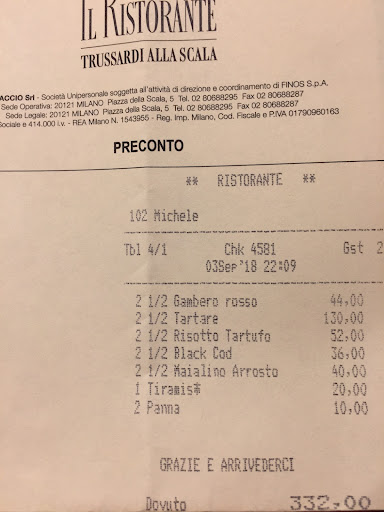 When we ordered the food, the staff (Michele) suggested he would arrange half portion for us for a good dining experience. But the staff never told us the price would be different. However at the end of the dinner, they doubled up the price for the half-portion dishes and charged us the following:- Gambero rosso (44€) Tatare with white truffle (130€) Risotto Tartufo with white truffle (52€) Black cod (36€) Maialino Arrosto (40€)