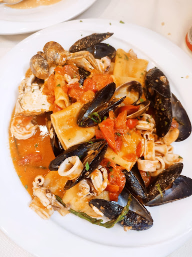 Il locale è gestito da cinesi, ma il personale parla italiano fluente. L'ambiente è molto simpatico, con murales che ti fanno sembrare all'interno del Nautilus. Il locale è pulito e in fondo si trova il banco del pesce fresco. Una volta ordinato, abbiamo aspettato un po', ma normale per una cucina espressa. Io ho preso uno spaghetto allo scoglio super abbondante e veramente buono. Altri commensali hanno ordinato dei tagliolini alla crema di scampi e dei paccheri ai frutti di mare, che erano uguali al mio spaghetto allo scoglio, cambiava solo il tipo di pasta, ma ottimo.