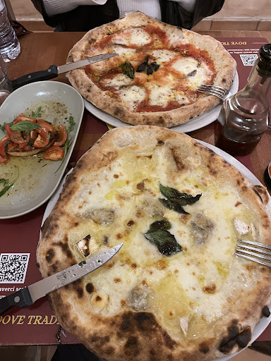Read moreSabato sera non trovavamo posto da nessuna parte e fortunatamente li abbiamo trovato un tavolo. Il locale ha un arredo molto semplice. Tovagliette e tovaglioli di carta posate non confezionate. Il menu offre tante possibilità di cibi differenti. Molta scelta nel menù delle pizze sia per gli ingredienti che per la tipologia. La pizza è buona ben cotta non bruciata. Ho preso il baccala fritto. Solo tre piccoli pezzi serviti su un letto di fratelli. €16 Il fritto si è inumidito sopra la verdura perdendo la croccantezza. Le verdure che non erano state segnalate nella descrizione del piatto erano piccanti, dove io non mangio piccante. Buona scelta di birre. Come dolce abbiamo preso un babba con due forchette essendo il dolce molto grande, entrambe le forchette posizionate nel centro del piatto galeggiavano nel Rum. Non era possibile usarle senza sporcarsi