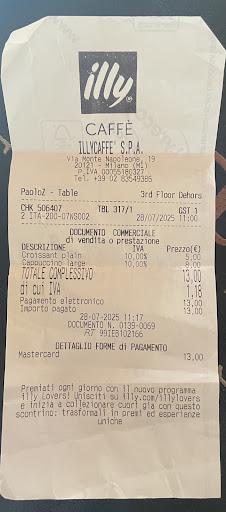 I sat for 15 minutes waiting for someone to take my order (even though the cafe was empty). The waiter eventually arrived: I ordered a cappuccino and croissant. After 25 minutes I decided to change to takeaway because it was taking too long and I only had 1 day in Milan. However, the coffee arrived just as I stood up. The croissant arrived 2 minutes later.