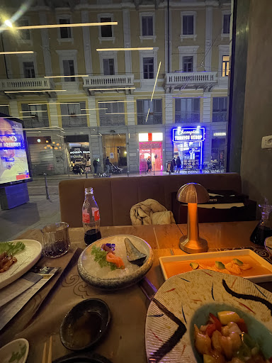 Pretty well everything that could have been bad was bad. When we walked in, the place was a filthy mess. Tables were either occupied or covered with dishes. Seemed extremely understaffed. Eventually got sat, waited quite for a while before ordering but they were busy so we were patient. The first thing we received was incorrect but couldn’t get anyone’s attention to tell them. We just left it aside... Then we got one order of sushi and after 1 min a manager came over to ask us if we want anything for last call because they were closing... we were waiting on about 10 more things? We went over our order and everything came out extremely cold somehow and all at once. Very unappetizing. And we felt extremely rushed. Tried to stack/tidy the empty plates since it all came out at once but no one stopped to take them. Would have been an alright experience if the food was decent but it was all pretty garbage. Wasted a meal in Milan...
