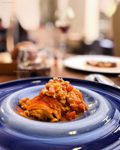 𝙏𝙖𝙜𝙡𝙞𝙤𝙡𝙞𝙣𝙞 𝙩𝙧𝙚𝙣𝙩𝙖𝙨𝙚𝙞 𝙩𝙪𝙤𝙧𝙡𝙞 - 𝘛𝘢𝘨𝘭𝘪𝘰𝘭𝘪𝘯𝘪 𝘵𝘩𝘪𝘳𝘵𝘺-𝘴𝘪𝘹 𝘦𝘨𝘨 𝘺𝘰𝘭𝘬𝘴 (8/10) Definitely a standout dish. The pasta was crafted from 36 egg yolks, yielding a rich and velvety texture. The combination of raw and cooked lobster, red prawns, and shrimp provide a fresh accent and offer succulent bites. Their harmonious blend of textures and flavors make this a true celebration of the bounty from the ocean.