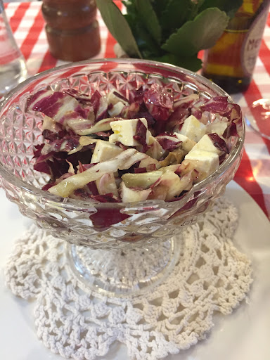 Telefono e prenoto per l'ora di apertura, le 20. Alle 19.52 siamo lì, ma aprono alle venti in punto! Ci tocca andare a zonzo su e giù per la strada per ingannare l’attesa. Finalmente entriamo. L'ingresso è quello tipico di una vecchia osteria. Dentro ambiente decisamente vintage, con tavolini quadrati e sedie in legno, tovaglia a quadretti bianchi e rossi, tovaglioli rossi... tutta roba in vero tessuto! Ci fanno accomodare a un tavolino appena fuori dalla porta della cucina, da qui controlliamo il via vai, ma torniamo poi a casa con i vestiti che odoravano di tutto e di più. Al servizio ci sono i titolari con almeno un paio di camerieri, in cucina ci sono degli stranieri. Il primo che passa di lì ci allunga il menù e ci dice che hanno un fuori lista, solo sette porzioni: risotto con la quaglia. DUE! A seguire optiamo per l’antipasto: vitello tonnato per mia moglie (lo so che è un piatto piemontese, ma non c'era altro che la ispirasse) e cervella fritte per me. Ci dice che le porzioni sono da antipasto, ma a noi va benone. Acqua gas e mezzo litro di Vernaccia. Sapete la mia idiosincrasia per i rossi che non siano Lambrusco, cioè a fermentazione naturale, perché mi provocano attacchi di fibrillazione atriale solo ad annusarli e siccome rischierei o il ricovero o la defibrillazione in loco, opto regolarmente per vini bianchi al di fuori della zona tipica del lambrusco.