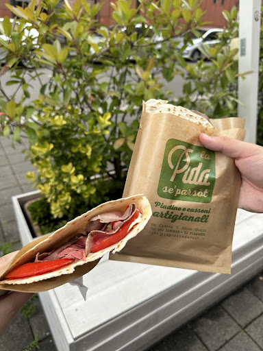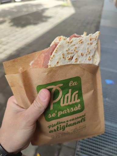 Read moreAutentica piadina romagnola in Bicocca. Da anni mi servo da "La Pida se' Parsòt" e ho sempre apprezzato eccellenza del prodotto, servizio e gentilezza. Le piadine vengono impastate al momento, con diversi assortimenti preparati al momento fra impasti a vostra scelta (es. integrale, kamut, ecc.). Ingredienti in abbondanza, serviti in puro stile romagnolo e generosi, le piadine sono davvero buone. Buoni anche i "cassoni", preparati in giornata. Ci si può sedere fuori, respirando un'aria "studentesca", e perchè no, sorseggiando una delle loro ottime birre artigianali. A distanza di anni, una conferma, complimenti a Giorgio e tutto il suo staff, sarebbe molto carino se a volte "La Pida" fosse aperta...