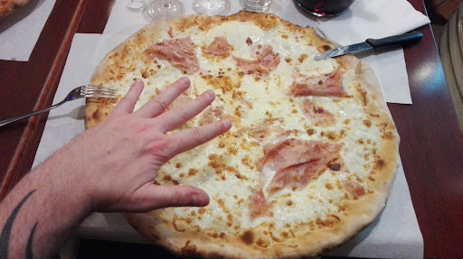 Read moreHo mangiato al locale solo una volta, con due amici, di mercoledì sera. Il locale era pulito e bene illuminato, con un buon odore di pizza nella zona ingresso, a ridosso della cassa e del forno. La pizzeria/ristorante offre anche antipasti, primi e secondi (a prezzi più bassi della media milanese) ma abbiamo tutti e 3 preferito ordinare una pizza. Sul menu c'è scritto che non è possibile smezzare in due una pizza, ma osservando quelle che stavano mangiando quelli alla tavolata da 10 vicino a noi la cosa ci è sembrata esagerata visto che le pizze sembravano solo un poco più grandi di quelle normali. In realtà poi abbiamo scoperto che quelle pizze erano quelle "piccole", quelle invece ordinate da noi erano proprio GRANDI (vedi foto): in sostanza mangiare una pizza grande equivale a mangiarne due di grandezza normale. La quantità della farcitura era discreta e la mozzarella abbondante, l'impasto buono: non si tratta quindi di una "pizza velina" ma di una pizza che per dimensioni e materiale riempie abbondantemente, anche tre lupi affamati come eravamo noi. Una pizza dal gusto più che discreto quindi, in quantità esagerata: ci è piaciuta. Abbiamo bevuto anche del vino sfuso rosso, un po' troppo frizzante per i miei gusti ma più che dignitoso. A chiudere la serata un amaro, una grappa e un dolce (il locale serve quelli "classici" della Bindi). Conto finale per 3 pizze grandi, 3 bottigliette d'acqua piccole, una bibita gassata, un litro di vino rosso sfuso, una grappa, un amaro e un dolce: 59 euro. La cassa accetta bancomat/carte e lo scontrino è stato rilasciato correttamente. Ci...