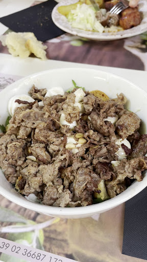 L'insalatona con straccetti di manzo è stata un'esperienza gustativa deliziosa. La porzione era generosa, perfetta per un pasto completo. Gli straccetti di manzo erano cotti alla perfezione, teneri e saporiti, con un leggero condimento che esaltava il gusto della carne senza sovrastarlo. Le verdure dell'insalata erano freschissime, croccanti e ben assortite, creando un equilibrio perfetto di sapori e consistenze. Il tutto era accompagnato da una vinaigrette leggera che legava splendidamente gli ingredienti senza essere troppo invadente.
