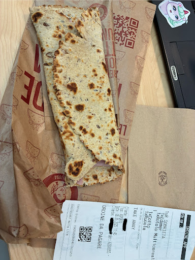 Senza gusto e sapore. Ci vado molto spesso in pausa pranzo perché è vicino al posto di lavoro, ma non resto mai soddisfatta. Non mi piace proprio l' impasto. Lo trovo troppo doppio, granuloso ed insipido. Mi piacerebbe che si potessero scegliere anche delle piadine industriali da farcire, o che riuscissero a farle di quel tipo, più sottili e che si avvolgono meglio. La pasta resta dura e il condimento si sposta tutto al centro. Poca farcitura e restano molte parti vuote che sono secche e dure. Non ci tornerei se non fosse che mi è comodo. Troppo caro rispetto a quello che offrono. Alcuni affettati sono troppo duri e si masticano a fatica. Dovrebbero rivedere molte cose per tornare agli...