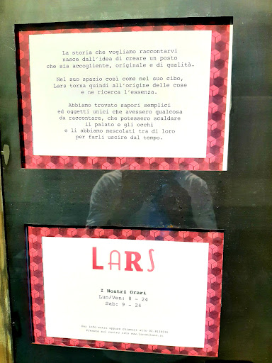 Si propone quale accogliente angolo di serenità, per qualsiasi occasione ed ora del giorno, dalla colazione alla cena, sino al brunch domenicale. Quale burgeria gourmet, Lars propone combinazioni di gusti davvero gustosi ed alternativi. Tutti i prodotti, dal panino, al burger, alle deliziose salse, vengono rigorosamente preparati dalla cucina, che non sbaglia mai un colpo!