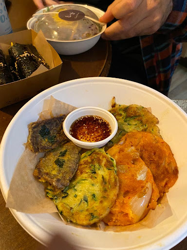 Il misto di frittelle coreane, conosciuto come Modum Jeon, era una vera delizia. Le frittelle erano croccanti all'esterno e morbide all'interno, con una varietà di ingredienti che spaziavano dalle classiche a quelle col Kimchi, offrendo una gamma completa di sapori.