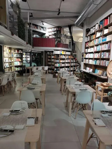 L’interno è reso caldo ed accogliente dalle pareti completamente ricoperte da librerie che ospitano migliaia di libri e riviste ed un’ampia balconata si affaccia sulla sala, ospitando una zona relax.