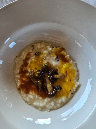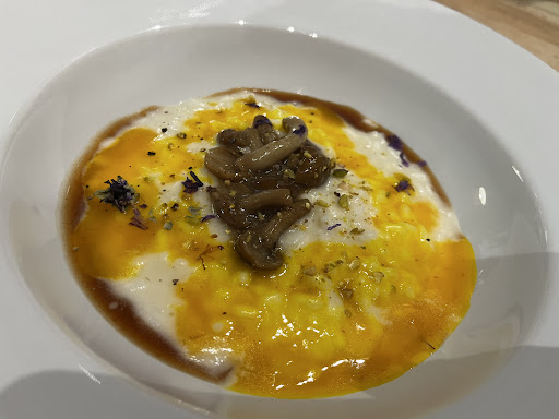 Partiamo dall'antipasto, si presenta gradevole e lo mangiamo ben volentieri, forse unica nota positiva. Dopo 1h di attesa (e più), si presentano con il primo, un risotto zafferano funghi (2 pioppini di numero) e (se li trovavi) pistacchi. Arrivato FREDDO e CRUDO con porzioni da posto gourmet neanche fossimo da Cracco. Sono stato sincero e ho riferito al cameriere che: il gusto poteva starci (quando i piatti sono freddi si sente di più ;) ), ma era freddo e CRUDO, sia il mio che quello della moglie. Il cameriere si è scusato e ha proposto di rifarlo in 3 minuti (praticamente me lo scaldava al microonde?) onestamente era già 1h e mezza che eravamo seduti con poco in pancia, quindi decidiamo di proseguire con il secondo.