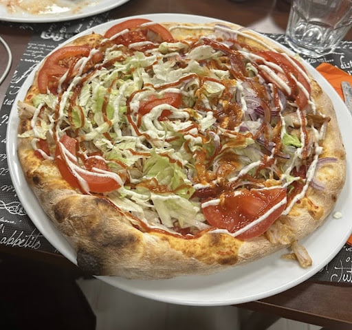 We ordered Kebab pizza and the taste was really good and the serving was full filling for 2 persons. If you order classic pizza it is a thin crust pizza of large size with 8 slices.