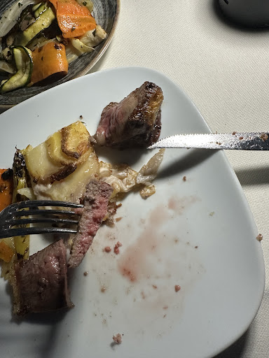 But this time was different. As always, I ordered the Fiorentina steak. It arrived already overcooked, and since it was served on a hot stone, it kept cooking even more. The result? Completely inedible — it was like chewing the sole of a shoe.