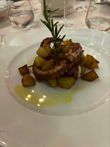 I’m in my early 40s and sometimes I feel old in a restaurant, in this one I felt like a baby due to feeling of old that this place emanates with is darkness with tables far too close to each other with overtalkative aloof guests stuck in the 1980s. Prices are Milan average but with many empty tables on a Saturday night when it is normally impossible to eat without reserving many days ahead. The staff is very professional but a bit over bearing. Welcome glass of wine was a Prosecco while 1 hour by car away there is the far superior Franciacorta for Spumante. Both courses, scallop and squid had weird taste in the sauces, not rotten or bad, just weird like badly paired. For fish much better to walk 5 minutes more and go to Orti di Belvedere, or for an overall more value for money (a bit more expensive and no fish) to la Bettola di Piero which focuses more on making the guests feel at home and with better and more solid food and wine choices, but good luck finding a seat...