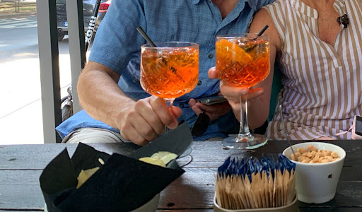 Almost hidden from the street. Delicious coffee and pastries. Very friendly service. Not a written menu just go by the counter and see what you want to eat and be prepared to eat more everything looks delicious(and is so). We had also Aperol spritz late in the afternoon and you get the drinks with complimentary focaccia with cheese...