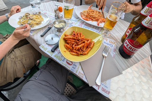Read moreWe came with friends for lunch, lured by good reviews. It was one of the few restaurants in the area that was open during the day. The restaurant had one person (chef/owner?), There was no music and it looked like they weren't ready for customers. However, when we asked if they were open, we were offered a seat. It turned out that pizza was only sold by the slice and there was no tiramisu (in the middle of the day?). We ended up ordering pasta but it was just edible and definitely not 5 stars. The dishes are dirty. It seemed like the owner didn't want to work that day, but the desire to get money from 6 hungry tourists was stronger than principles. But why open if you're not ready to work? And the unwillingness to admit one's wrongness in reviews only increases the desire to give him a bad rating. I do...