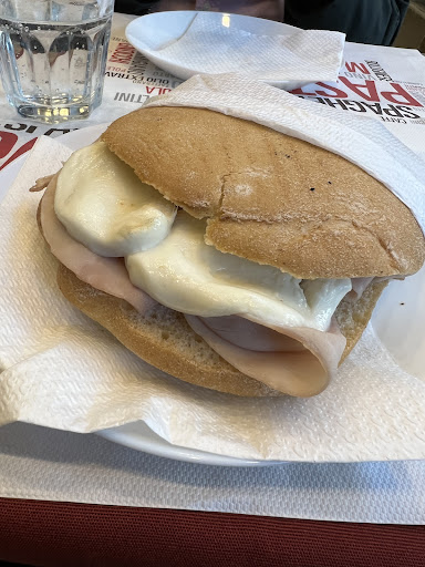 Read moreI would put a higher rating, would they not have a menu especially for tourists, with a higher price point. We went there on a pinch for a quick panini, we saw outside on the Italian menu that it was 4.50 euros. We enter, I speak Italian, but they hear my husband speak English and straight up their attitude changed. They gave us a menu full of pictures and with the price of the panini different from the one outside in Italian. Panini was ok, but staff was beyond rude after they heard a...