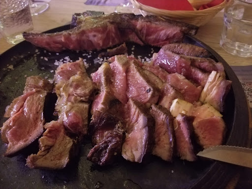 Read moreOverall the place was ok but they convinced us they were known for their steaks. This is a mistake by all accounts. Overly seared/ burnt on one side makes the tough older beef taste like charred shoe leather. Maybe the ribeye is better than their prized T-bone but the quality of the beef we received was old tough dry aged, seared on one side to the point of ensured chewiness. If they care about their beef, the animals they source and their restaurant. They need to show their pride all the way to the table. Not sure if you can tell from the photo but their bread is tasteless saw dust as well. Everything else on the menu seemed to be held to a higher standard. A real let down that a meat place would serve fork bending old tough beef at 70 Euros a kg. Order anything else and you might get what...