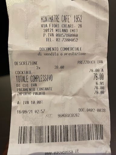 Read moreNo drink menu so you don’t know what you are ordering. I asked for margarita with salted rim and god some kind of limy water with salt all around the glass but not the rim. (I regret so much I didn’t take a picture). The drink cost 12€ and i didn’t even get the apperitivo. It was the most expensive cocktail (and the worst) I have ever had. Next time for this price I will go to sit in front of Duomo. When we asked the waiter at the till about the price he asked us where we were from. Then we had a short conversation about the prices which he finished with a silly sentence that for good drink you have to pay. Excuse me?! It was anything...