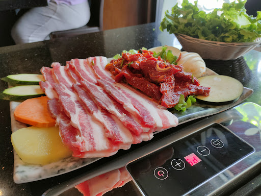 We sat in the grill area, where each and every table has a personal grill that will be turned on upon ordering. You can order already made plates, like noodles (which are really good btw) and other meat or veggies, hotpot soups, or you can fully embrace the chef that is in you and order a "grill plate". There is a good variety of selections, pork, cow, mushrooms, hotdogs, pumpkin and others, with options to combine some of them (or get them all, if you can't decide). What you'll get is a big plate of raw meat (or seasoned, but still raw) and a set of tweezers, grill on and you're set. Unique experience and fun times, most enjoyable with friends for sure, but also very good by yourself.