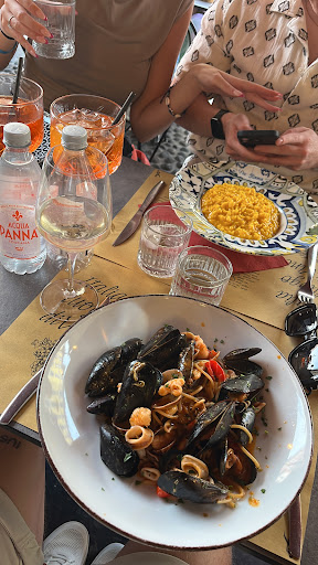 Read moreHonestly, this place was so lovely. The view from the table was breath taking (great to come and see the sunset, while relaxing with some wine and great food). This was some of the best spaghetti I have ever eaten in my life. The prawns were delicious and sauce was perfect. I love the al’dante texture of the pasta all over Italy! The only reason that I didn’t give it a 5* was because, the dish that I had, had a bit of a crunch to it, making it like you could have been eating dirt while chewing on this delicious food. I had ordered the chilli, prawn spaghetti. I highly recommend this dish. Also, the drinks were severely overpriced and not worth buying. €4 euro for a 330ml can of coke, Fanta etc... you’re better off buying a cocktail and going around the corner to the delicious ice cream parlour and buying a can of soft drink there for only €1.30! The waiter must have seen us drinking our drinks away from the restaurant as there is no way that I would allow anyone to pay €4 euro for a can. It’s not even that expensive on the plane!! He must have been a bit upset with us at the end, which is understandable, so completely ignored us afterwards. However, all of the staff there were excellent. The food is also highly expensive for what you get, but I guess the taste and the dishes make it worth the price! Of course not forgetting that beautiful environment and gorgeous views...