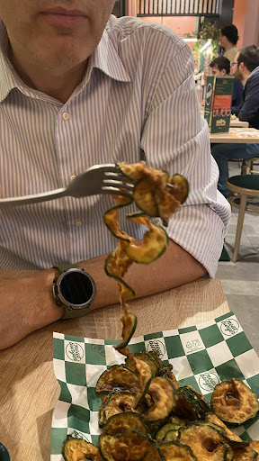 Ah, super hamburger, ottimo club sandwich, fritti sempre bocciati- nello specifico “chips di zucchine”- perché sempre troppo unto rispetto quanto dovrebbe, poi paradossalmente patatine 🔝ma anche lì, peccato le abbiano coperte...