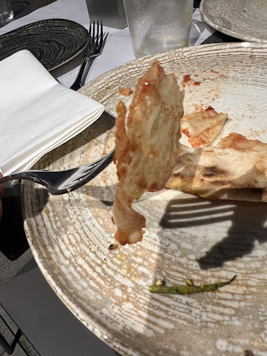 Go here for the views, the terrace and the experience but not for the pizzas. I live in Milano for about half a year now and this is the second worst pizza I’ve had. My way of grading pizza is asking for a Margueritta. In this case they promised “buffalo DOP”. It’s difficult to accept that a place that prides themselves as a “mozzarella bar” puts in pits pizzas something that it is not buffalo mozzarella but even more it is not decent mozzarella. I make my own pizzas and I am used to many different type of cheese from shredded mozzarella to Fior di latte to buffala mozzarella in balls. Mozzarella di buffala is always watery and soft even if you cut it and drain it before but what I was presented was a rubbery flat and dry cheese difficult to chew. (See picture). On the other hand the oven is not a typical traditional dome oven as I have seen in other Obicà restaurants but a regular electric pizza oven. Worst of all the pizzaiolos don’t achieve any leoparding on the crust. Service was hit and miss. We ordered two pizzas, a glass of wine and bottle of water plus a fruit juice for my toddler. They sent two glasses of wine, three pizzas and the water and juice. They returned the excess without much issue but it was a repetitive inconvenience to explain we didn’t ask for those. Olive oil and aceto balsámico on the table were actually excellent but the included basket of 6 pieces of bread for 3 people was a disappointment. Grossing (bread sticks) were stale and not crunchy and the other bread slices on the drier side. You get charged 4 euros for coperto (just for this subpar bread) per person and our 3 year old toddler was accounted as well which I find abusive. In summary, views are pretty good (very close to the side of the Duomo), the terrace is modern and well laid out but the food is really forgettable. UPDATE in response to the owner’s reply: It is very frequent to see restaurants have their standards lowered and lowered specially when you get a constant flux of tourists that are never going to become returning customers. Your explanations about the quality of the flour, the carefull processing of the dough and specially the quality of the mozzarella maybe were something that was done in the past but I guarantee you they are not the current process or ingredients. Just look at the flat rubbery cheese. Do you think that is possible from buffalo mozzarella? Believe me that the looks is generous compared to the flavor and texture which were just like chewing rubber. I dare you to visit the restaurant and verify yourself.