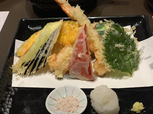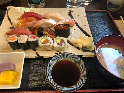 I had the sushi misto matsu platter which for 30 euros consisted of 8 pieces of sushi, 3 pieces of sushi rolls, 2 pieces of uramaki rolls + appetizer (which was a taro and mango gelatin), miso soup, ice cream or coffee. Pros: all of the sushi and rolls were extremely fresh and tasty. Cons: The gelatin appetizer is bland and starchy-- overall, very disappointing. Overall portion size is small for 30 euros. Service was a tad slow and non-attentive.