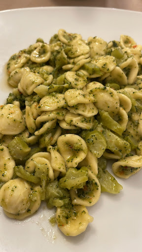The atmosphere is that of a typical Italian osteria, with the added warmth of a Neapolitan business. The staff is professional, and the owner very kind. I had homemade orecchiette alla barese (9 euros, absolutely delicious) and two sides (sautéed broccoli and sautéed mushrooms). The service is fast and the portions are generous. The restaurant serves plastic-bottled water (the only flaw, if I must find one), so I chose hot water with lemon, which was not added to my bill. I added my tip to my credit card payment, and the owner immediately moved the cash equivalent to the tip jar, informing the staff that a present was left for them—something that lit smiles on everyone. Looking forward to...
