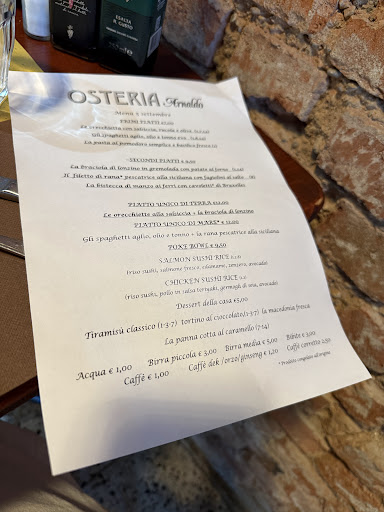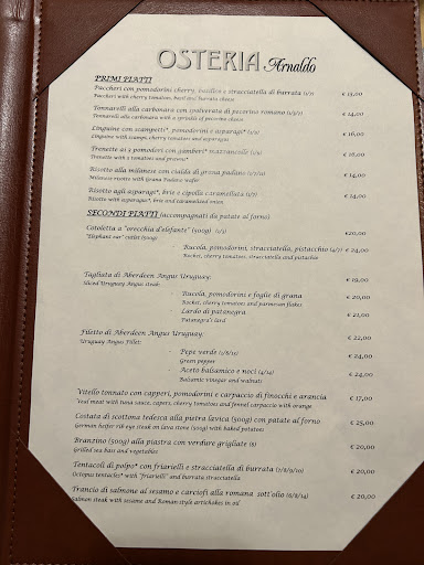 L'Osteria Arnaldo è una vera gemma. Situata in una posizione incantevole, questo ristorante riesce a coniugare il fascino rustico e accogliente dell'osteria con un servizio impeccabile. Ogni piatto è un'esperienza culinaria straordinaria. I primi sono un tripudio di sapori, con pasta che si scioglie in bocca, mentre i secondi piatti, che includono carni succulente e pesce fresco, sono cucinati con maestria e passione dallo chef. Anche i dolci, semplici ma sofisticati, rappresentano il perfetto finale per un pasto da ricordare. Il servizio è attento e cordiale, con il proprietario Henry e il personale che sa consigliare il vino giusto per ogni piatto, accompagnando gli ospiti in un viaggio sensoriale che rende ogni visita unica. L'atmosfera è calda e familiare, ideale per una cena in compagnia o una serata speciale. Quando si entra all'Osteria Arnaldo, si ha la sensazione di essere trattati come parte della famiglia, e la qualità del cibo e del servizio non fa che confermare questa impressione. Un'esperienza che ogni amante della buona cucina dovrebbe vivere almeno una volta, e che sicuramente ti farà tornare per goderti ancora una volta le sue prelibatezze....
