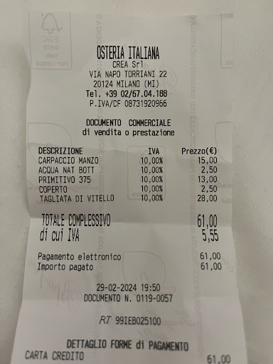 My wife and I visit Milano regularly (4-5 times a year) and we usually stay in Milan for 5 nights. However, we have not been able to find the best Italian restaurant in Milan until the end of 2024. Very fortunately, we finally did it!! We found out the best Italian (including Milaniese) restaurant in Milan when we visited Milan at the end of January 2025. It is OSTERIA ITALIANO. We visited this restaurant on 29 January 2025 for the first time. Since then, we have enjoyed Italian at the Osteria Italian 5 nights in a row (every night from 29th January 2025 until 2nd February 2025). And, my wife and I have already decided that we will enjoy our favorite Italian (including Milanese) ONLY at the OSTERIA ITALIANO every time we visit Milan. The reason is simple - it is the BEST in town - Pizzas: the BEST, Pastas: the BEST and Milanese specialties such as Ossobuco with Milanese Risotto & Cotoletta: the Best. Before you ask me how BEST, visit the Osteria Italiano and try every cuisine. You will be a fan of Osteroa Italiano. Furthermore, two servers. Rumen (head) and Bellale always provide us with wonderful, outstanding and exceptional hospitality, service and help for each table (Of course, all other servers are wonderful as well). Also, they are willing to help each guest so that he/she enjoys each dish 100% satisfactory. So, this restaurant can be your dining room in Milan! Once you get to know each server, especially, Rumen and Bellale, your happiness will enhance. They convey your preference (for example, Al Dente for Pasta) for each order to the kitchen perfectly. And the kitchen completely and perfectly follows such preference from each guest. So. ever cuisine becomes the best. Thank you, Rumen and Bellale for your hospitality. The restaurant manager, Nikola is also nice, kind and warm-hearted person. We feel this restaurant has a mood of family. Try to visit the Osteria Italiano and make your days in Milan happier! We will be back to Milan in the middle of April for 5 nights and of course will enjoy the best Italian & Milaniese at the Osteria Italian for 5 dinners in a row (every night during our stay). Simply because THE BEST! Thank you. ...