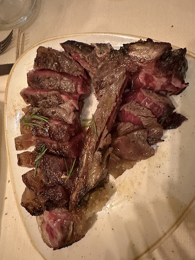 We ordered the rib eye sashi steak but instead were given the sashi Florentine steak (which was a t-bone) - which was fine, however, the steak was still quite rare and we had asked it to be cooked medium. We then sent it back and asked for it to be cooked to a medium. When it was brought back to us it was incredibly chewy and wasn’t even a medium rare at this point. The potatoes as a side were quite yum however. The waiter was polite but after having already sent it back once, we decided not to bother and left it mostly untouched. The waiter had gifted us our drinks which was nice however considering the steak cost 100 euro, this didn’t really do much to the bill.