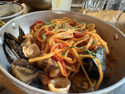 This was a pleasant surprise as we had figured this might be touristy but turned out to be a great meal. The waitstaff offered us a seat right away with availability inside or out. Inside was a great reprieve from the hot summer air. After a reasonable amount of time we were asked for orders and were served bread along with provided olive oil and balsamico. Great way to kick things off and accompanied our burrata appetizer. Fresh and hot mains arrived in a timely fashion. Throughout service we were asked how the meal was and if we needed anything. The atmosphere was good inside with the place relatively busy with a mix of locals and tourists. Would recommend this place and will likely return before our visit in...