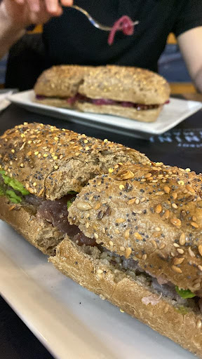 Read moreIl mio compagno ed io siamo stati in questo delizioso locale domenica a pranzo. Cibo buonissimo dall’antipasto al dolce, proprietari gentilissimi e ambiente accogliente. Mentre il mio compagno ha ordinato un antipasto misto di bruschette di pesce crudo, io ho optato per il cotto mangiando una bruschetta con purea di ceci e seppia, un’altra con melanzane sott’olio e filetto di tonno scottato e l’ultima con cipolle caramellate e polpo. I panini sono stati un tripudio di sapori: il mio era farcito con paté di olive nere, pomodorini secchi e baccalà; quello del mio compagno con stracciatella di latte, gamberi crudi, olio evo e pepe. Dimenticavo la bruschettina “conclusiva” a fine pasto: cipollotti saltati, ricotta e granella di pistacchio. È proprio vero che quando c’è la qualità, non è necessario farcire con mille sapori! Consigliatissimo: pesce e panini di qualità. Non una paninoteca, ma un modo diverso di mangiare...
