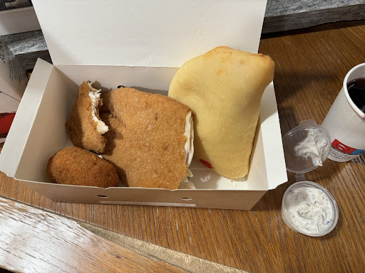Ordinato da asporto. Box patatine mezza vuota (prezzo 4.50 euro) Patatine secche fredde senza sale e.... farà ridere non a vortice che era uno dei selling points. La box è arrivata completamente unta con supplì esploso, cotoletta fredda e secca, panzerotto dall impasto soffice ma vuoto praticamente senza ripieno... Avendo pagato 30 euro sinceramente la qualità era scadente e le porzioni piccole sopratutto le patatine. Il cibo era secco e freddo cosa che non penso dipenda dal delivery che è stato piuttosto veloce. Ordinato da diversi venditori ma prima volta che siamo così insoddisfatti. Le bibite sono state messe sopra le box fattore per cui probabilmente panzerotto e supplì sono stati schiacciati facendo...