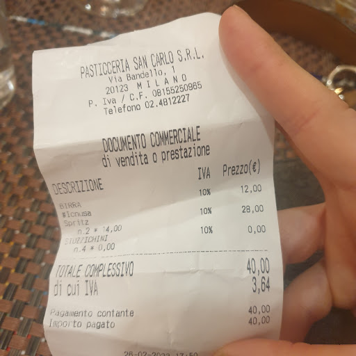 Read moreUnfortunately, we had a very disappointing experience at Pasticceria San Carlo. The woman behind the pastry counter was extremely rude to my wife. She spoke in a harsh and unfriendly tone and showed no effort to communicate or assist â even though my wife spoke politely in English.