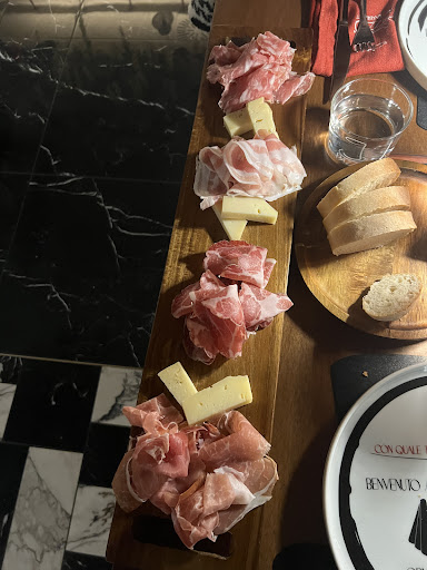 Read morePrenotiamo in questo locale in 5, amici/colleghi che lavoriamo tutti nel campo della ristorazione attirati dalla pubblicità sui social. Iniziamo con il dire che il cameriere è partito a gamba tesa consigliandoci un Brunello di Montalcino da 120€ (senza specificare il prezzo), e con la scusa del "poi la cucina chiude" (ci eravamo appena seduti ed erano le 21:00) voleva farci ordinare a tutti i costi in maniera insistente il Tomahawk per la sua lenta cottura, sebbene noi gli avessimo già ripetuto parecchie volte che saremmo partiti con i taglieri e dopo avremmo ordinato primo, o primo e secondo a seconda della restante fame. Mangiamo discretamente, non so se perché il locale era "vuoto" e quindi la cucina più tranquilla, però restiamo soddisfatti del cibo e delle porzioni, un po' meno per i prezzi dei primi, secondo noi eccessivi. Prezzi sicuramente da adattare, troppo alti per un ristorante del genere.