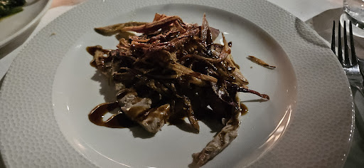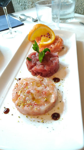 Un locale piccolino ma molto tranquillo e con una bella atmosfera dove si cucinano esclusivamente piatti a base di pesce. Buona la lista degli antipasti che oltre ai piatti classici prevede anche alcune proposte di pesce crudo comprendenti crostacei e ostriche freschissime e di ottima qualità. La lista dei primi comprende quasi tutti i classici di mare. Gli spaghettoni ai frutti di mare erano perfetti, cotti alla perfezione e con abbondante condimento. La lista dei secondi comprende anche "il pescato del giorno" che comprende alcuni pesci freschissimi che possono essere cucinati al momento secondo i gusti del cliente. Noi abbiamo optato per il classicissimo fritto di gamberetti e calamari che qui viene realizzato con dei calamaretti tenerissimi tagliati a strisce e fritti in modo leggero e delicato. Ho trovato molto buone anche le patate al forno servite a contorno, avevano un sapore molto particolare che ho apprezzato. La lista dei dessert comprende solo una specialità: Il tartufo di Pizzo Calabro, un semifreddo a base di gelato alla nocciola con cuore di cioccolato liquido. I prezzi sono adeguati alla qualità della materia prima, purtroppo il pesce ha un costo elevato e questo si ripercuote sul prezzo dei piatti. Quello che ho trovato un po' fuori misura è il costo delle bottiglie di vino. Delle bottiglie tutto sommato abbastanza normali vengono proposte a dei prezzi un tantino esagerati. Molto valido il servizio, gentile, professionale e veloce. Una nota di merito all' attenzione dimostrata per i bagni delle signore, una rarità in...