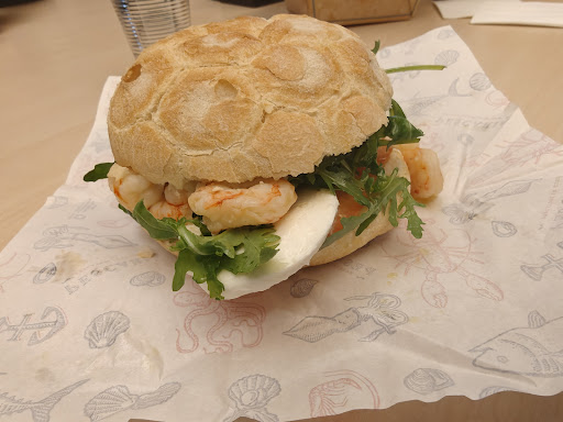 We had a really lovely lunch in this fish restaurant. This is a "you queque, order, sit and wait for your food" kind of service. The waiter was really kind and the service surprisingly quick considering that the local was full of people. The Covid rules fully implemented. The location is stylish and the outdoor tables are very enjoyable in this warm autumn. I had mixed fried fish that was dry and crispy with an unexpected tender baby octopus inside perfectly fried :). The White fish tartare from the seasonal menù was tasty and really good balanced with crunchy Taralli and mint flavor for a hint of freshness. Then the fried octopus panino was also really good and well filled. For all of these goodies and a beer we spent around 45 euro, more than fair for the quality and quantity of food for the city of Milan. I will be...