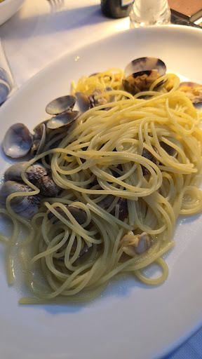 Domenica sera, ore 21.00. Io e mia moglie siamo tornati in questo ristorante dopo parecchio tempo, con un buon ricordo di esso. E invece: qualità del cibo buona, ma non eccelsa (pane riscaldato, entree preparata chissà quanto prima, pesce buono ma niente di straordinario) porzioni molto piccole (vedi sotto) Pasta alle vongole, 50g con 8 vongole in tutto, sgusciate.19€. Tris di tartar con 3 tartar minuscole alla modica cifra di 35€ Vino al calice overpriced (ma magari ci sta, devono pur marginare da qualche parte ;) ) servizio lento e farraginoso (finiamo l'antipasto, portano via il piatto di servizio, ci lasciano i piatti sporchi sul tavolo fino alla portata successiva.