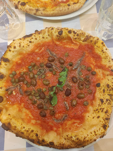 MENU Il menu é completo e oltre alle pizze é presente tutta una serie di piatti ispirati alla tradizione napoletana ma rivisitati con qualche contaminazione sempre del Sud Italia. Rispetto al passato la lista delle pizze classiche si é ampliata e ne sono state aggiunte anche alcune gourmet che hanno permesso lo svecchiamento del menu. Buone le frittelline di benvenuto offerte, un gradito pensiero in attesa di scegliere cosa mangiare. Ho assaggiato la pizza "A' Vincenzin", devo dire buona. Impasto leggero e cottura corretta. Ingredienti di buona qualità e abbondanti, forse pure troppo, speck dominante rispetto alla crema di pistacchi, per la serie less is more. Pizza "A' Patanell" invece non ci siamo proprio nonostante l'accoppiata patate e salsiccia sia un grande classico. Impasto in alcune parti gommoso, probabilmente non perfettamente cotto, molto strano sembrava quasi fatto da una mano differente. Salsiccia un pó "bollita" le mancava quella bella crosticina croccante. Ingredienti tagliati in maniera troppo grossolana, una dimensione inferiore ne avrebbe permesso una disposizione più omogenea e una migliore cottura a tutto vantaggio della presentazione e soprattutto del gusto.