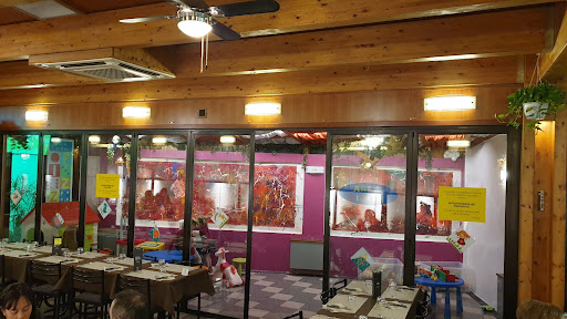 Partiamo dal mangiare. Innanzitutto c 'è il forno a legna. Arriviamo con la voglia di pizza e nell'attesa ci hanno portato una focaccia buonissima. Ci ha fatto capire che la serata sarebbe stata buona; ed effettivamente la pizza (al trancio) mi ha soddisfatto, non male. Voto 7. I miei bimbi, si sono mangiati una pasta al forno servita nel piatto di terracotta, era ottima. Durante la serata abbiamo visto passare degli invitanti taglieri di affettati con focaccia, che proveremo come antipasto la prossima volta. Hanno qualche birra artigianale, mi sono fiondato su una blanche. Non male. La location è carina, non grandissima, quindi anche se piena, acusticamente non è stata stressante. Inoltre...sorpresa...c'è una saletta ludica dove i miei bimbi si sono svagati per gran parte della serata, con tavoli da disegno, peluche, maschere e qualche giochino. Adatta per i più piccini(direi fino ai 6/7). Servizio non male, ho contato almeno 3 persone che giravano costantemente in sala. Dimenticavo... 2 grossi televisori che dominano la sala.... mi hanno permesso di godemi la mia squadra ribaltare il...
